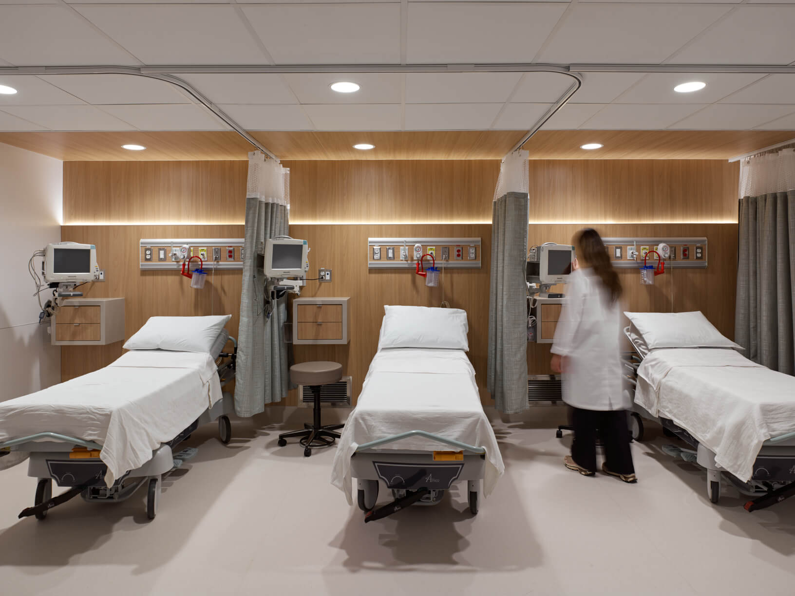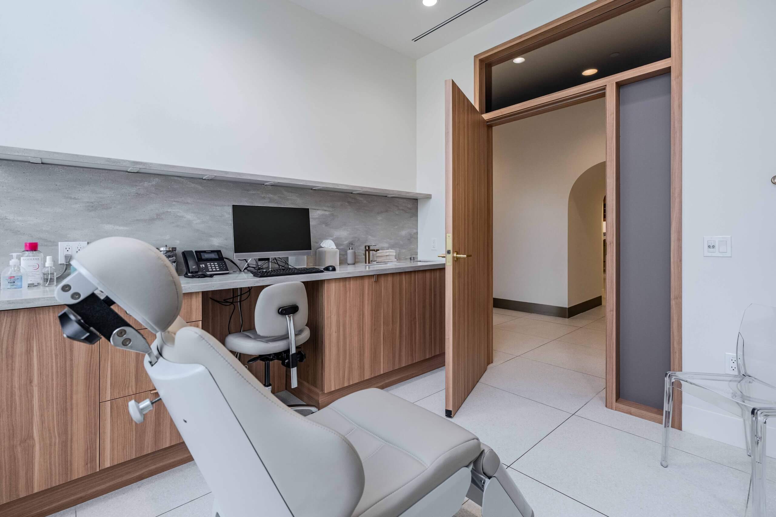 To support both clinical operations and the practice’s high-end aesthetic standards, the project included the installation of custom millwork, construction of new interior partitions, and precise coordination of HVAC upgrades tailored for medical environments. Electrical components were strategically placed to support medical equipment, patient rooms, and administrative functions, while flooring installations were managed to balance durability, hygiene, and design continuity.